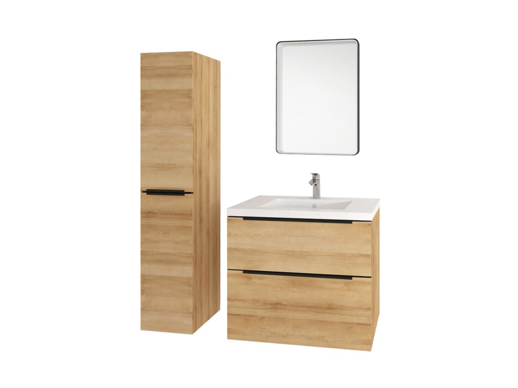 Mailo, kúpeľňová skrinka s umývadlom z liateho mramoru, 810x750x476 mm, spodná, dub Riviera, 2 zásuvky, čierne madlo.
