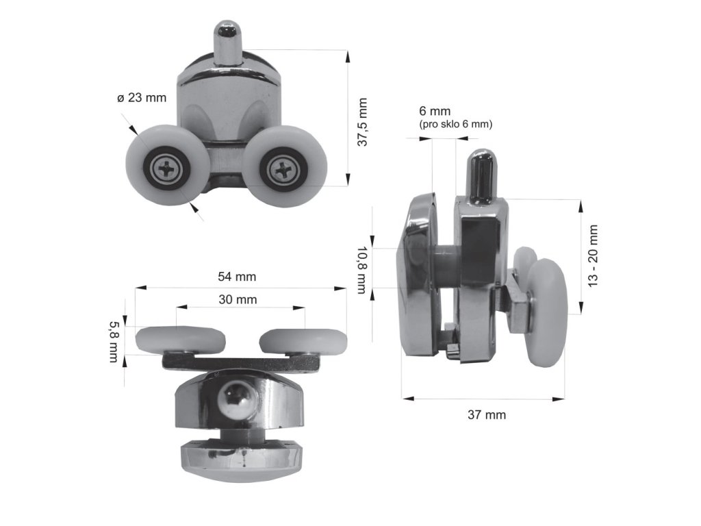 Sady pojazdov – spodné, pojazdy vyberateľné pre sprchové dvere a kúty LIMA, CK804xxK a CK608xxK, sada 2 ks