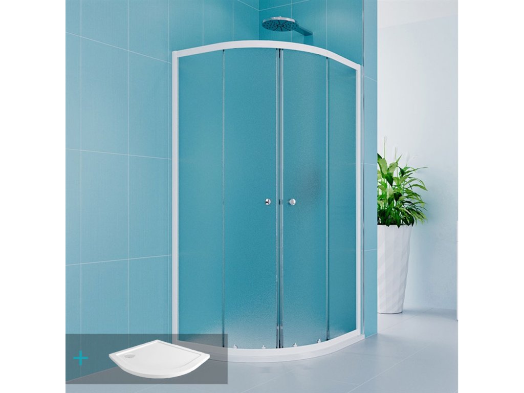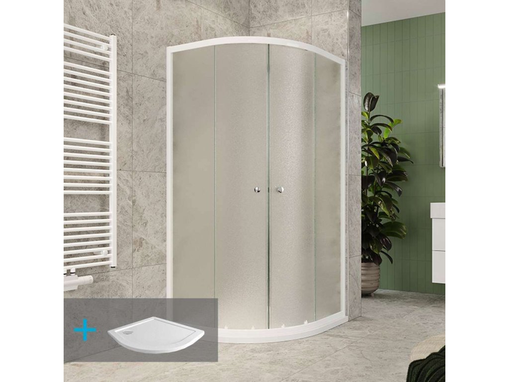 Mereo Sprchový set z Kory Lite, štvrťkruh, 90 cm, biely ALU, sklo Grape a nízké SMC vaničky CK35121ZN