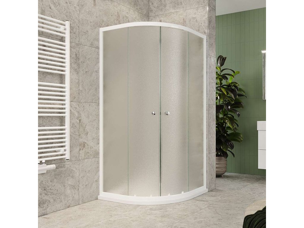 Sprchové kúty série Kora, vnášajú do ekonomickej triedy nový rozmer kvality. Hrúbka bezpečnostného skla je 4 mm. V prevedení Grape sklo a biely ALU profil. Sprchovací kút je vybavený posuvnými dverami, ktoré majú ložiskové pojazdy s excentrickým osadením (vďaka tomu máte možnosť perfektného nastavenia). Dorazy zaisťujú minimálny náraz pri otváraní a zatváraní sprchovacieho kúta.Spodné pojazdy umožňujú odklopenie posuvných časti sprchovacieho kúta a vyčistenie bežne nedostupných miest. Tesnosť medzi pevnou a posuvnou časťou je zaistená silikónovými lištami.