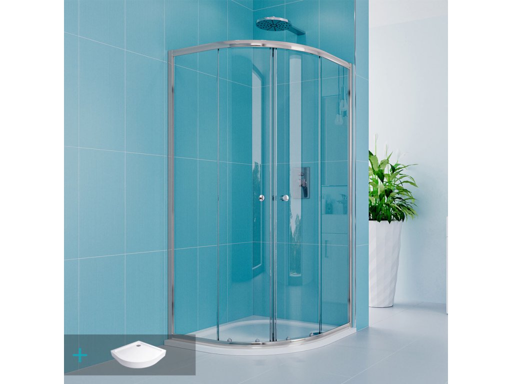 Mereo Sprchový set z Kory Lite, štvrťkruh, 90 cm, chróm ALU, sklo Číre a vysoké SMC vaničky CK35123ZH