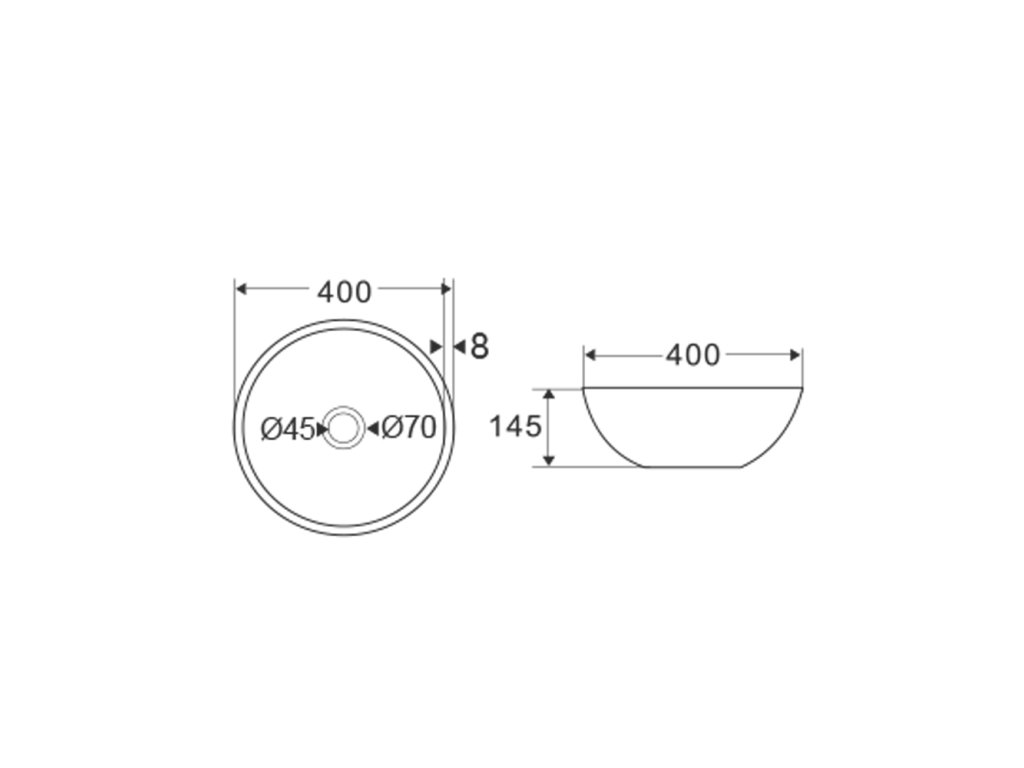 Nábytkové keramické umývadlo na dosku bez prepadu, 400x400x145 mm, okrúhle