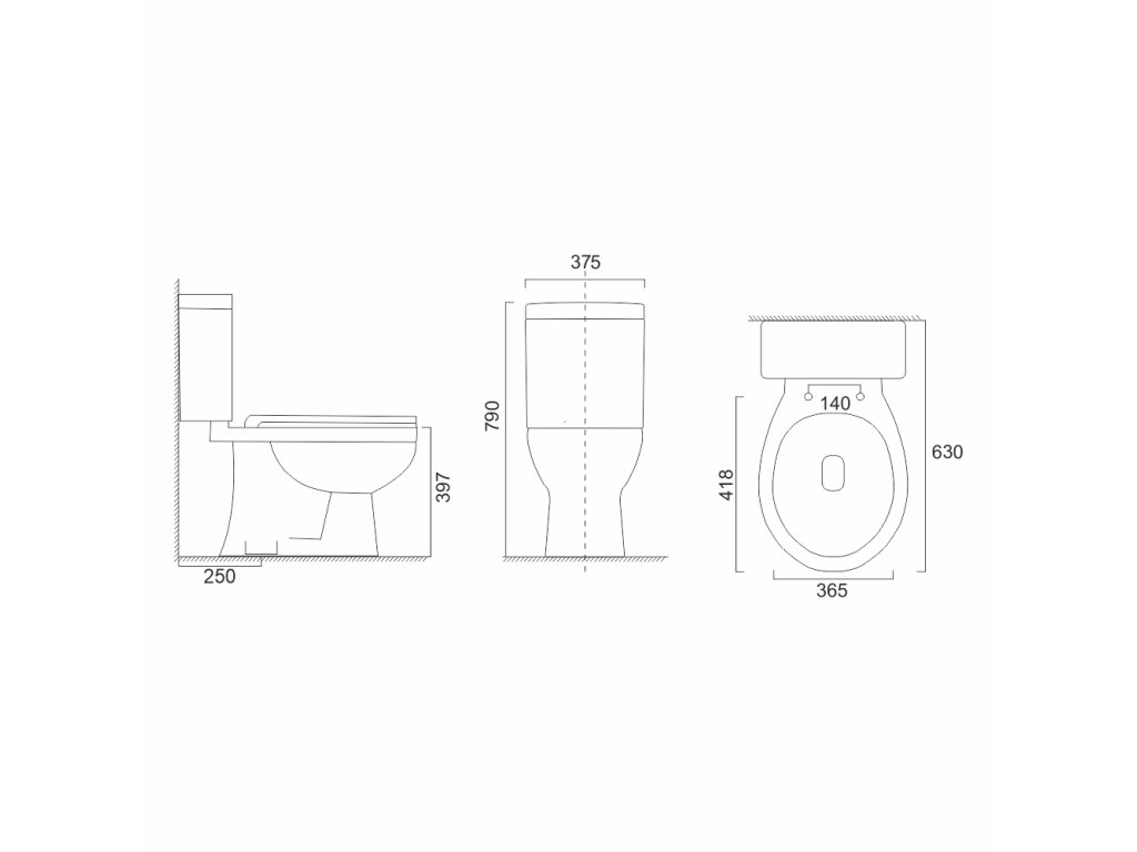 WC kombi so spodným odpadom s armatúrou má dvojité splachovanie. Hlavnou prednosťou tejto série je funkčnosť a pekný design.