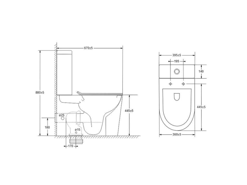 WC kombi, vyvýšené, vario odpad, kapotované, Smart Flush RIMLESS, 390x880x670mm, keramické, vr. nádržky VSD91TN a sedátka CSS125, spláchnutie 4/6 L.