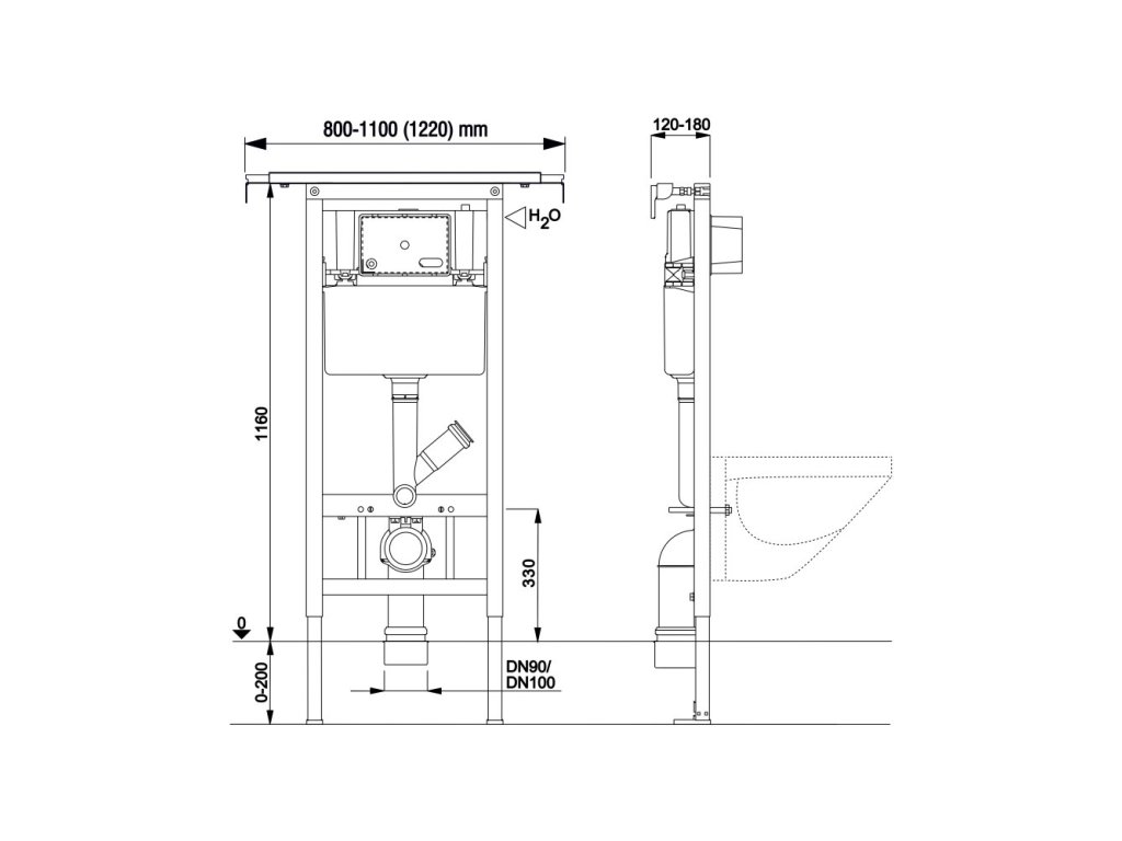 • Pre montáž závesného WC s roztečou 18cm a 23cm