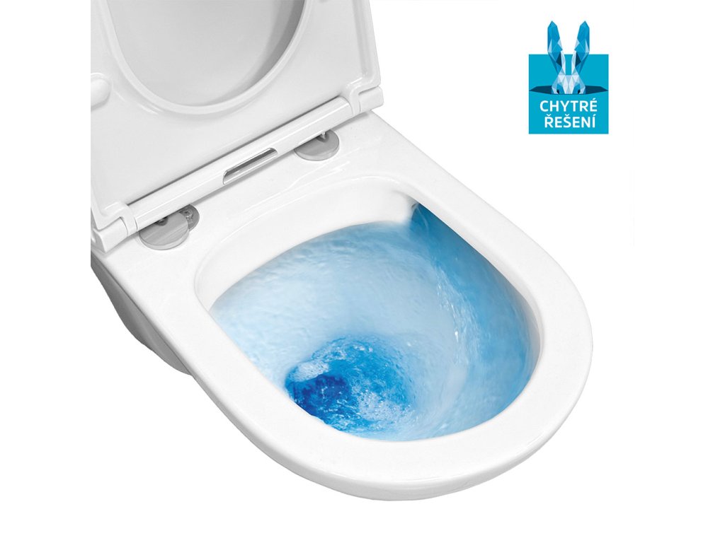 Díky novému tvaru mísy odpadá složité čištění splachovacího žlábku pod okrajem mísy, který je používaný na klasických klozetech, a kde by se mohly hromadit bakterie, špína a usazeniny.