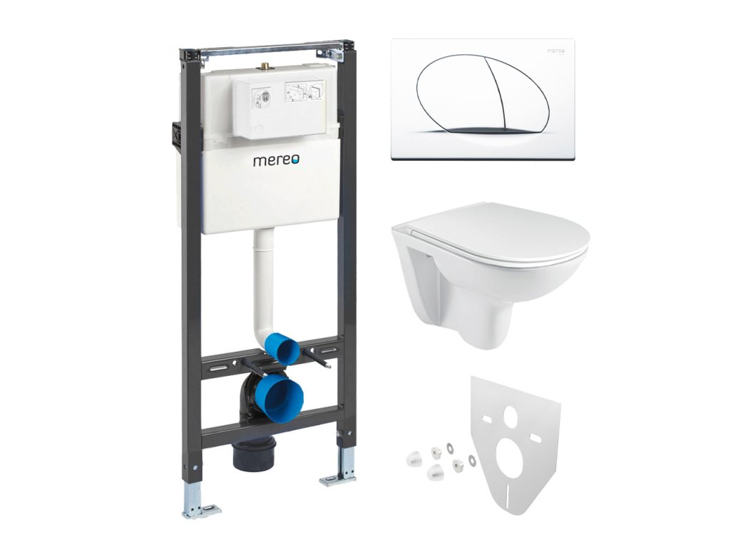 Mereo WC set - Rimless WC oblé, modul pre sadrokartón, biele oválne tlačidlo MM02NSETRS110