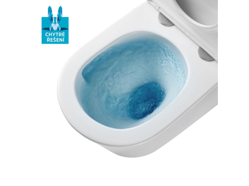 Klozet nemá splachovací žliabok pod okrajom misy. Vďaka novému tvaru misy tak odpadá zložité čistenie splachovacieho žliabku, ktorý je používaný na klasických WC, a kde by sa mohli hromadiť baktérie, špina a usadeniny. Misu tak jednoducho očistíte.