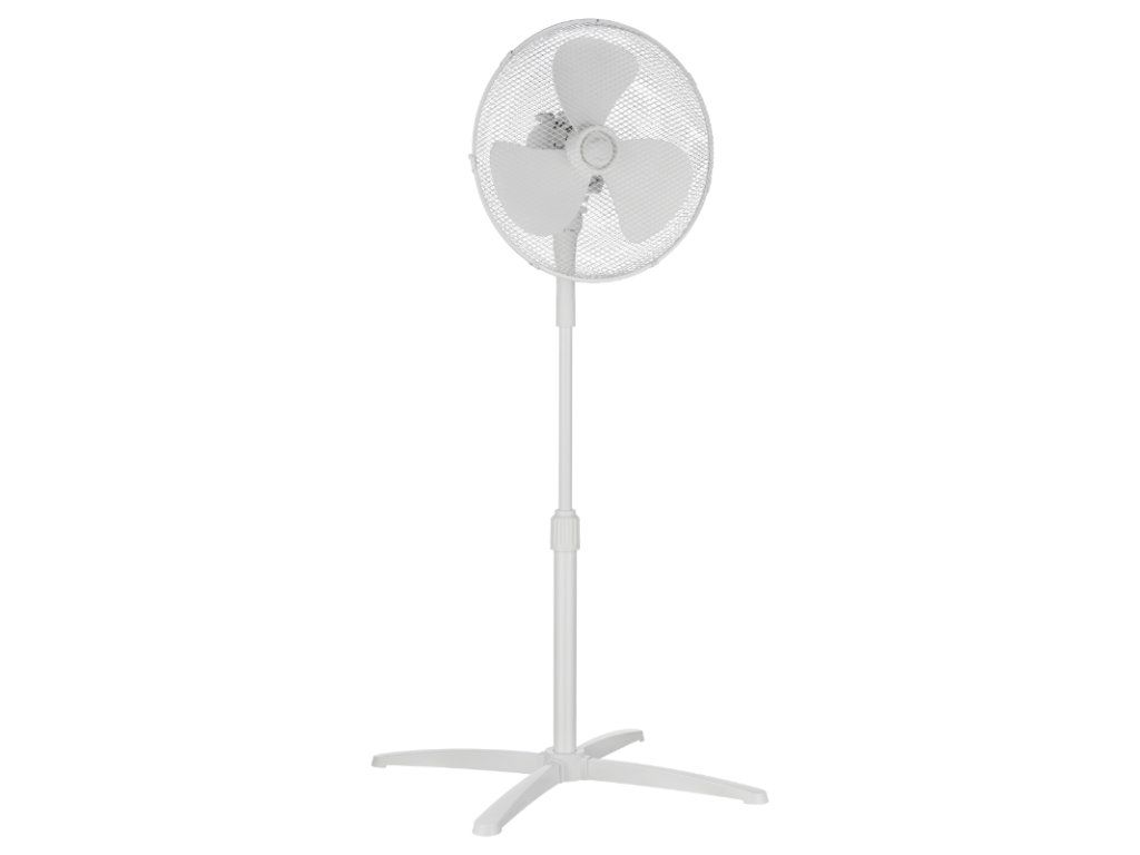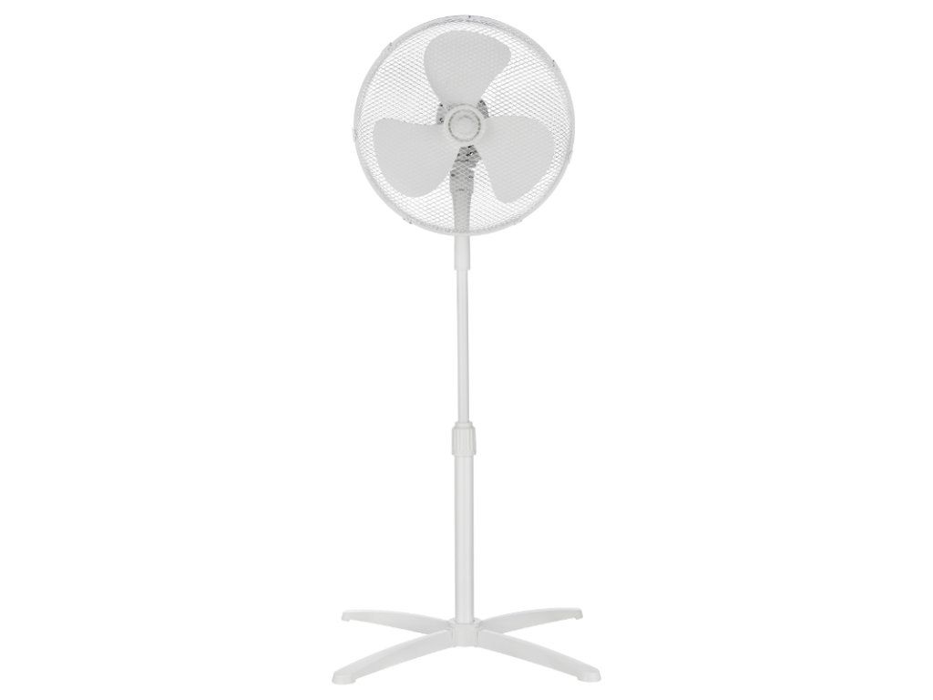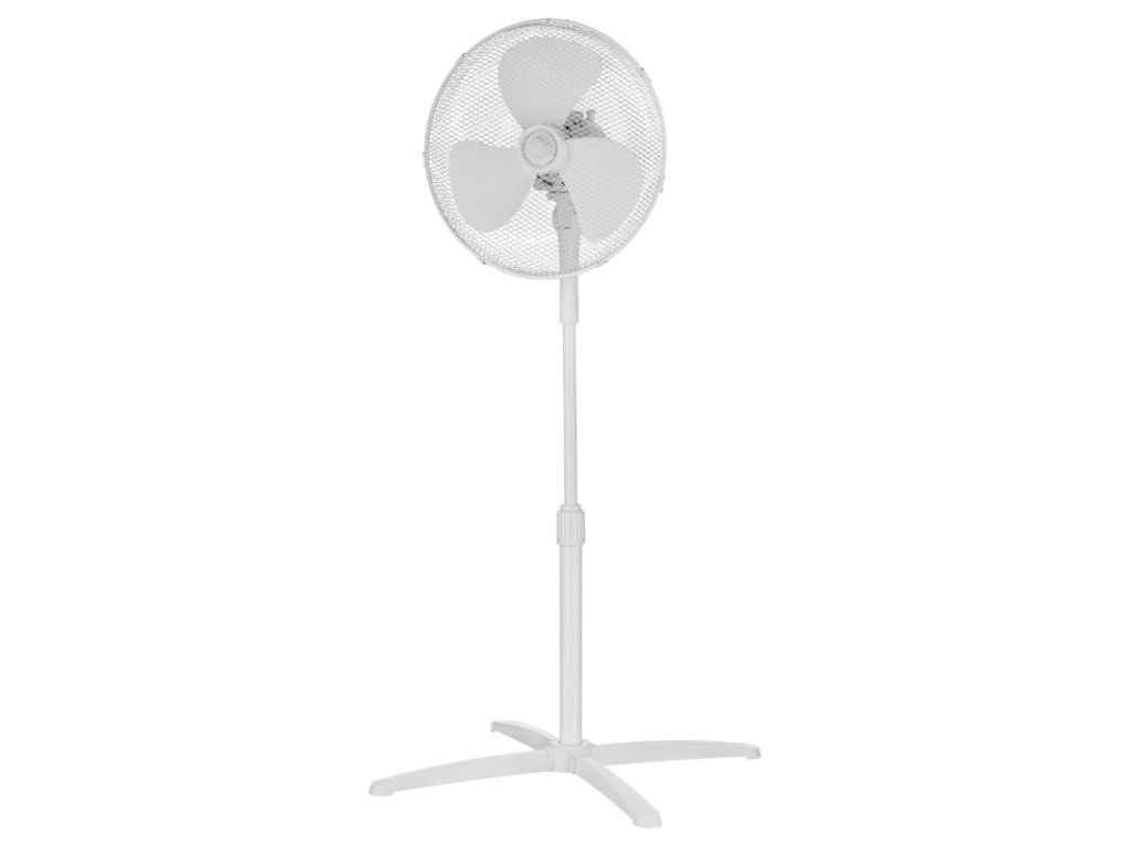 - Biely stojanový ventilátor s priemerom 16 palcov (40 cm)