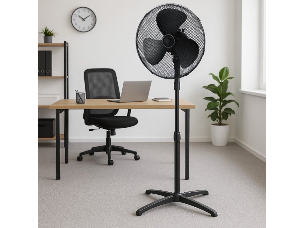 - Biely stojanový ventilátor s priemerom 16 palcov (40 cm)