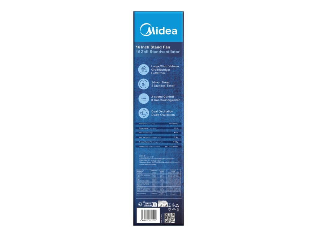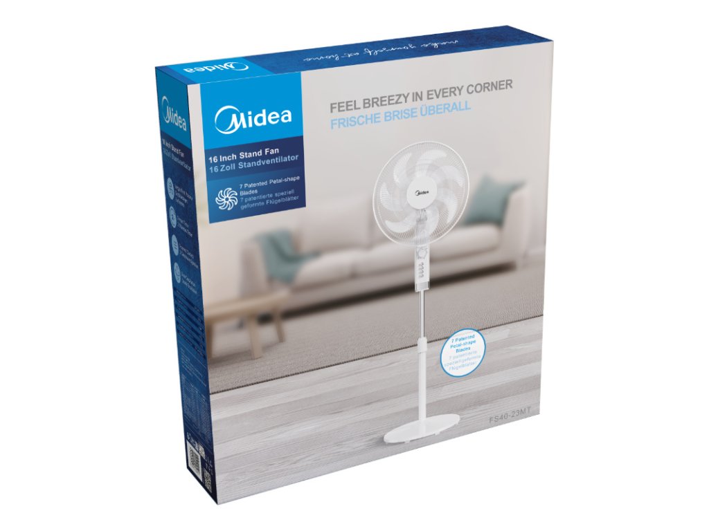 MIDEA Stojanový ventilátor, 7 lopatiek, biely, M-FS40-23MT