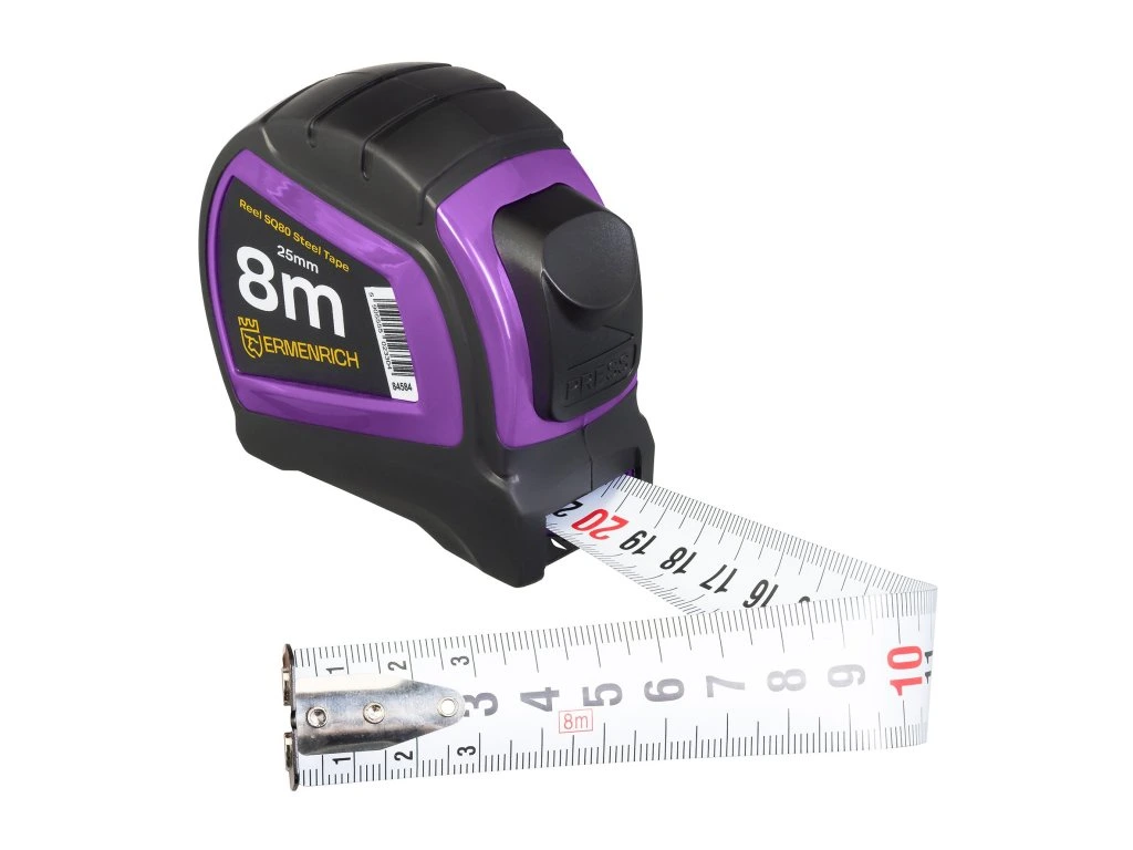 Navijak Ermenrich SQ80 vám pomôže pri všetkých stavebných, opravárenských a kreatívnych prácach ako dizajnérovi a dekoratérovi. Zmerajte presné rozmery stavebných materiálov, dielov alebo veľkosť voľného priestoru v miestnosti pri rekonštrukcii domu. Ľahko tak zistíte, koľko nábytku sa vám do miestnosti zmestí. Pomocou meracieho pásu môžete ľahko merať vzdialenosti až do 8 metrov. Vďaka uzamykaciemu mechanizmu môžete nameranú hodnotu na metri aj zabezpečiť. Tento model má stupnicu na oboch stranách a je vybavený magnetickým háčikom.