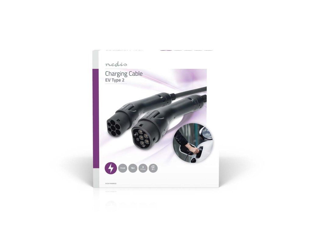 Nedis kábel pre elektrické vozidlá/ kábel typ 2/ 16 A/ 11000 W/ 3-fázový/ čierny/ krabica/ 5 m, 528124
