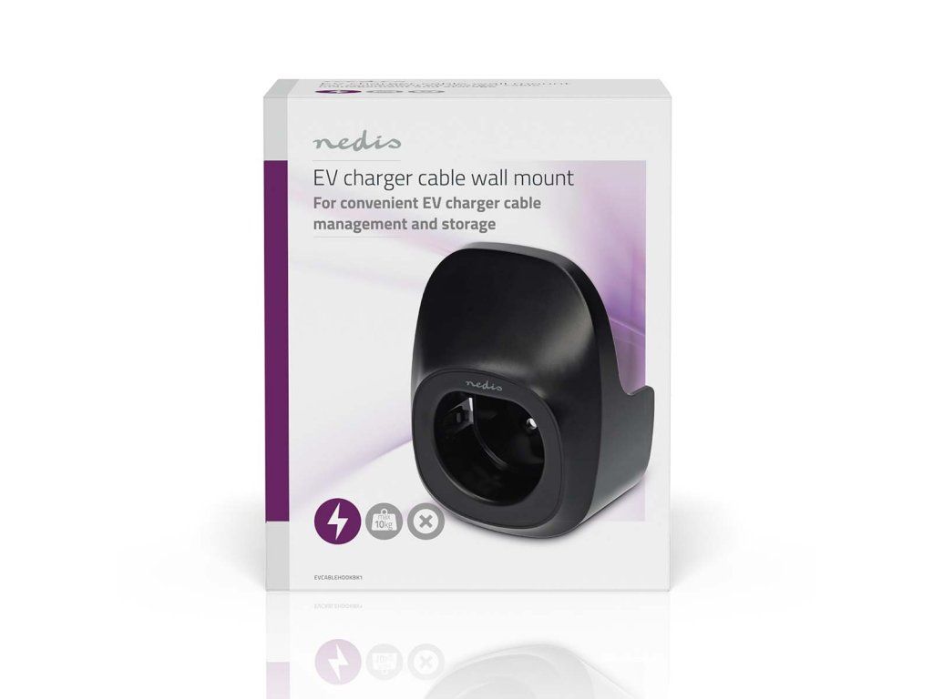 Nedis nástenný držiak, pre napájacie káble elektrických vozidiel, kompatibilný s typom 2, čierny, 5281241