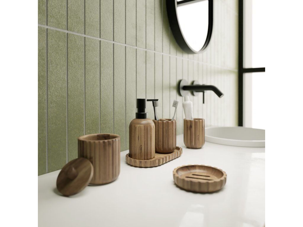 Všestranný pohár z agátového dreva spája praktickosť s elegantným dizajnom. Ideálny na zubnú pastu, zubné kefky alebo iné kozmetické doplnky. Teplé tóny dreva a jeho krásna štruktúra dodávajú kúpeľni prirodzený, útulný vzhľad a vytvárajú príjemné prostredie na každodenné rituály. Výrobky z radu Akaya sú vyrobené z akáciového dreva s certifikátom FSC, ktoré pochádza zo zodpovedne obhospodarovaných lesov. Zobrazený výrobok nie je namontovaný na stenu. Všeobecné pokyny na údržbu voľne stojacich doplnkov Povrch polyresinu a plastových materiálov POM si vyžaduje pravidelné čistenie. Voľne stojace príslušenstvo možno čistiť mydlovou vodou. Po vyčistení ho utrite do sucha handričkou. Nenechávajte príslušenstvo stáť na umývadle vo vode! Pôsobenie vody, zvyškov mydla, pasty atď. môže poškodiť povrch. To isté platí pre bambusové príslušenstvo dodávané s niektorými voľne stojacimi doplnkami. Na odstránenie silnejšieho znečistenia použite ocot. Roztok by mal pôsobiť približne 15 až 20 minút. Po použití výrobok dobre opláchnite čistou vodou. Na čistenie v žiadnom prípade nepoužívajte umývačku riadu. Na údržbu kovového, skleneného a keramického príslušenstva jednoducho použite utierky, ktoré si môžete objednať pod týmito číslami výrobkov: RP 1005, RP 1005 SET, RP 1006 a RP 1006 SET. Tieto utierky sú skvelými pomocníkmi v domácnosti. Sú ideálne na čistenie rôznych povrchov a vďaka svojej vysokej kvalite zaručujú dokonalý výsledok pri každom použití, a to bez použitia chemických prostriedkov. K poškodeniu môže dôjsť v nasledujúcich prípadoch : a) pri použití bieliacich alebo dezinfekčných prostriedkov, najmä ak obsahujú zlúčeniny chlóru (chlórnany, chlórnany atď.). Tieto prostriedky sa nemusia používať priamo na výrobky. Výrobok sa môže poškodiť aj v nevetranej miestnosti, kde sa zráža voda s chlórom (bazény, vírivky atď.). b) v dôsledku usadzovania vodného kameňa. Silné vrstvy vodného kameňa, ktoré sú zároveň mokré, výrazne zvyšujú riziko poškodenia. c) Používanie alkalických alebo kyslých vysoko koncentrovaných čistiacich prostriedkov a prostriedkov obsahujúcich silné oxidačné činidlá (protiplesňové a bieliace prostriedky). Tieto prostriedky sa nemusia používať priamo na výrobky. Používaniu týchto prostriedkov sa treba vyhnúť v priestoroch s obmedzeným vetraním - odparené chlórované zlúčeniny môžu kondenzovať na povrchu a poškodiť ho. Ak je potrebné použiť tieto čistiace alebo dezinfekčné prostriedky, zabezpečte, aby bol priestor dobre vetraný a aby sa čistené povrchy dobre a rýchlo opláchli! d) použitie stavebnej chémie určenej na čistenie napr. obkladov zo stavebných materiálov - sú veľmi korozívne! e) použitie tekutých alebo pastovitých pieskov, ktoré obsahujú abrazívne častice! Treba sa vyhnúť akýmkoľvek drsným čistiacim prostriedkom, pretože môžu spôsobiť poškriabanie. V žiadnom prípade sa nesmie používať oceľová vlna. Uvoľňujú sa z nej častice železa, ktoré poškodzujú povrch. f) používanie ponorných kúpeľov na čistenie striebra! Tieto obsahujú silné kyseliny alebo chloridy a sú tiež úplne nevhodné na čistenie výrobkov alebo predmetov. g) V prípade čistenia povrchov čistiacimi prostriedkami, ktorých zloženie nie je známe a ktoré by mohli poškodiť vrchnú vrstvu povrchovej úpravy. Škodlivé je aj použitie nevhodných čistiacich prostriedkov alebo nesprávna údržba. Použitie nevhodných čistiacich prostriedkov alebo nesprávna údržba má za následok poškodenie výrobku spôsobené spotrebiteľom a vzniknuté vady nie je možné reklamovať! Na výrobok sa vzťahuje zákonná záručná doba 2 roky. Informácie výrobcu GPSR GPSR.Dodatočné parametre