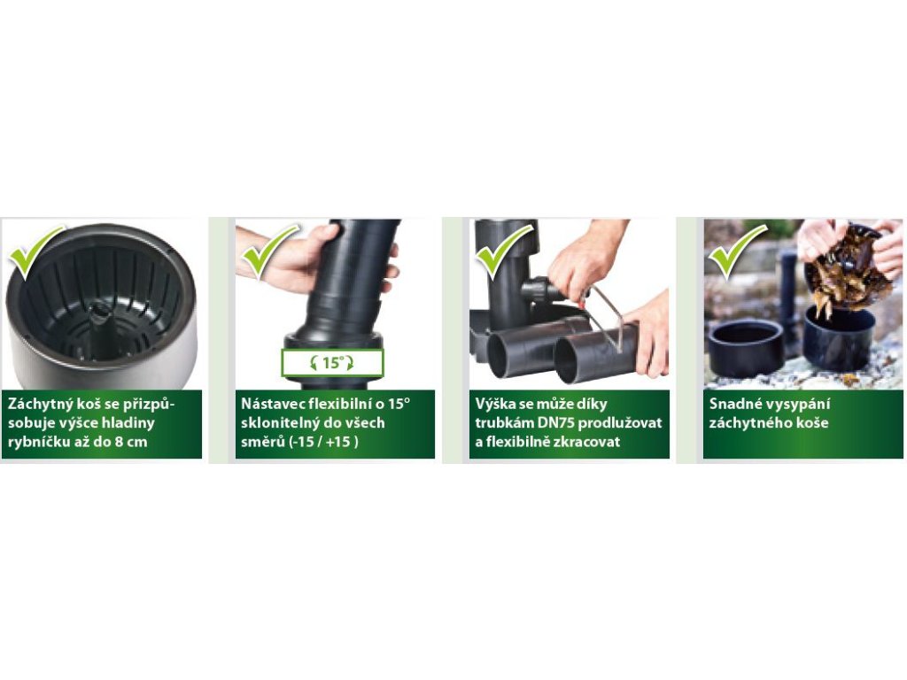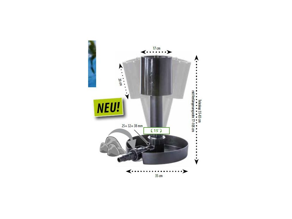 Odkalovač HEISSNER F551-00 chráni vaše jazierko pred nečistotami na hladine, zabraňuje klesaniu nečistôt na dno jazierka a ich následnému rozkladu a výrazne skracuje čas strávený údržbou jazierka. Má pozitívny vplyv na biologické čistenie jazierka, pretože sa z neho vysáva teplá voda, stabilizuje sa teplota v jazierku, a tým sa znižuje rast rias.