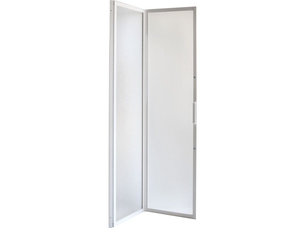 priestor v zloženom stave. Základná konštrukcia je vyrobená z odľahčeného hliníkového profilu povrchovo upraveného komaxitom (prášková technológia), v ktorom je pomocou sanitárneho silikónového tmelu uložené syntetické sklo. Toto riešenie zaručuje dokonalú nepriepustnosť vody, ľahkú údržbu a zároveň zabraňuje tvorbe plesní. Všetky použité materiály nepodliehajú koróznym účinkom.