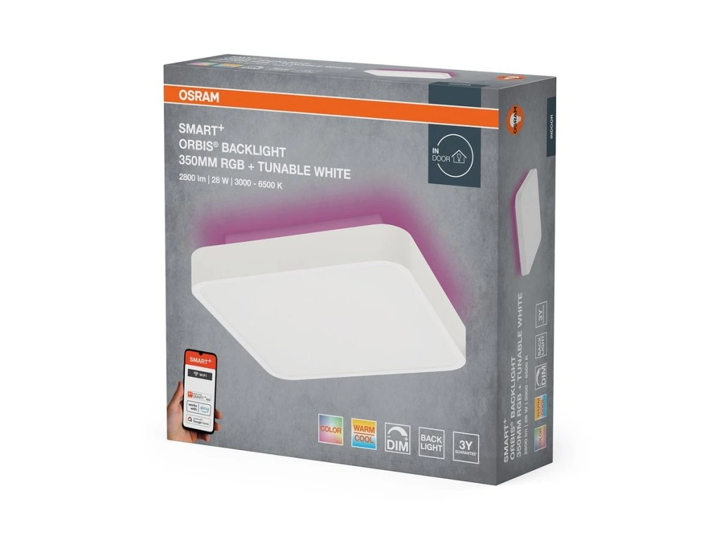 ORBIS BACKLIGHT stropné svietidlo, 350x350mm, WIFI RGB + stmievateľné, OSRAM, 2800lm, 28W, IP20, biela AC314090255