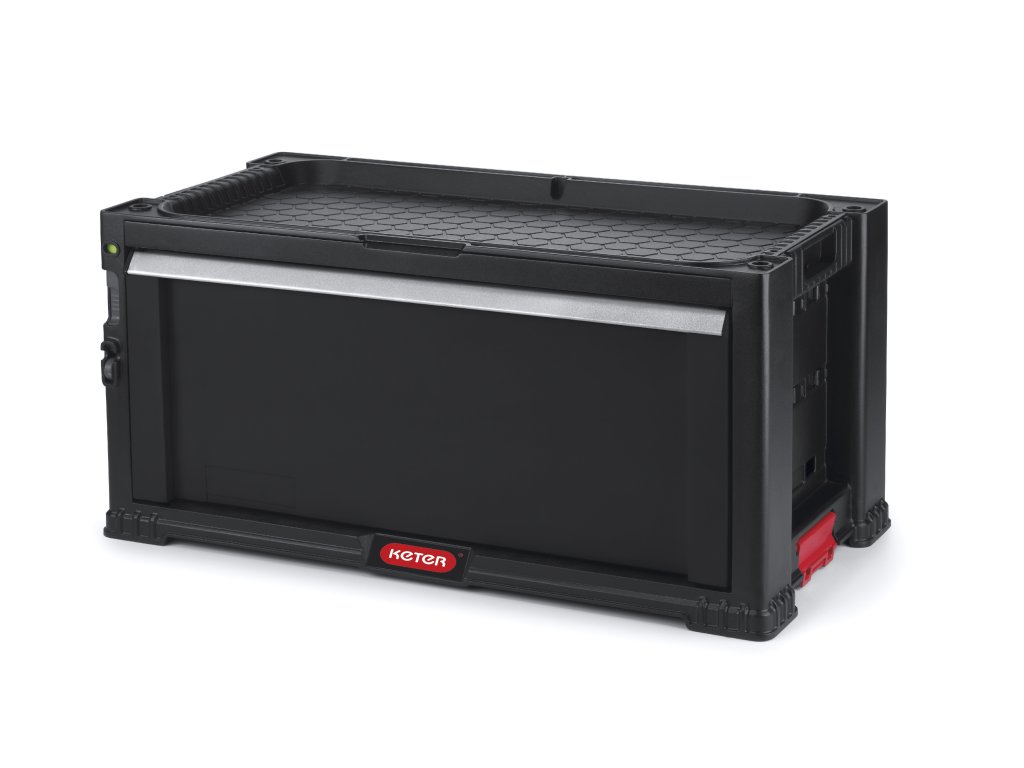 Úchyty na bokoch boxu na pohodlné prenášanie. Manipulácia s ním je jednoduchá, či už ho chcete naložiť do auta, vziať na záhradu alebo odložiť do dielne. Organizér je vybavený jednou priestrannou zásuvkou na uloženie náradia alebo iného príslušenstva. Budete ich mať vždy po ruke a pripravené na použitie.