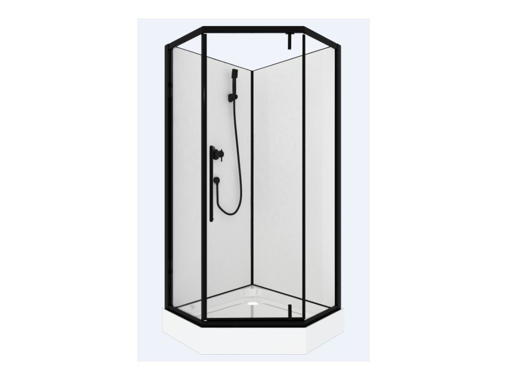 - Päťuholníkový sprchový box s nízkou vaničkou