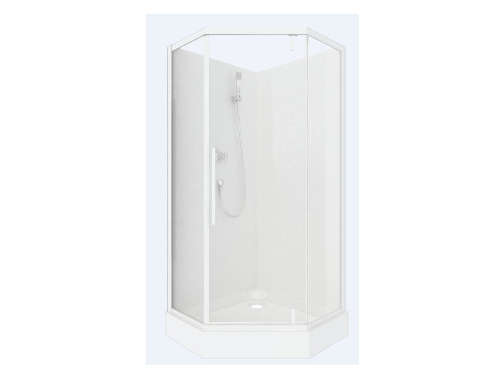 - Päťuholníkový sprchovací box s nízkou vaničkou