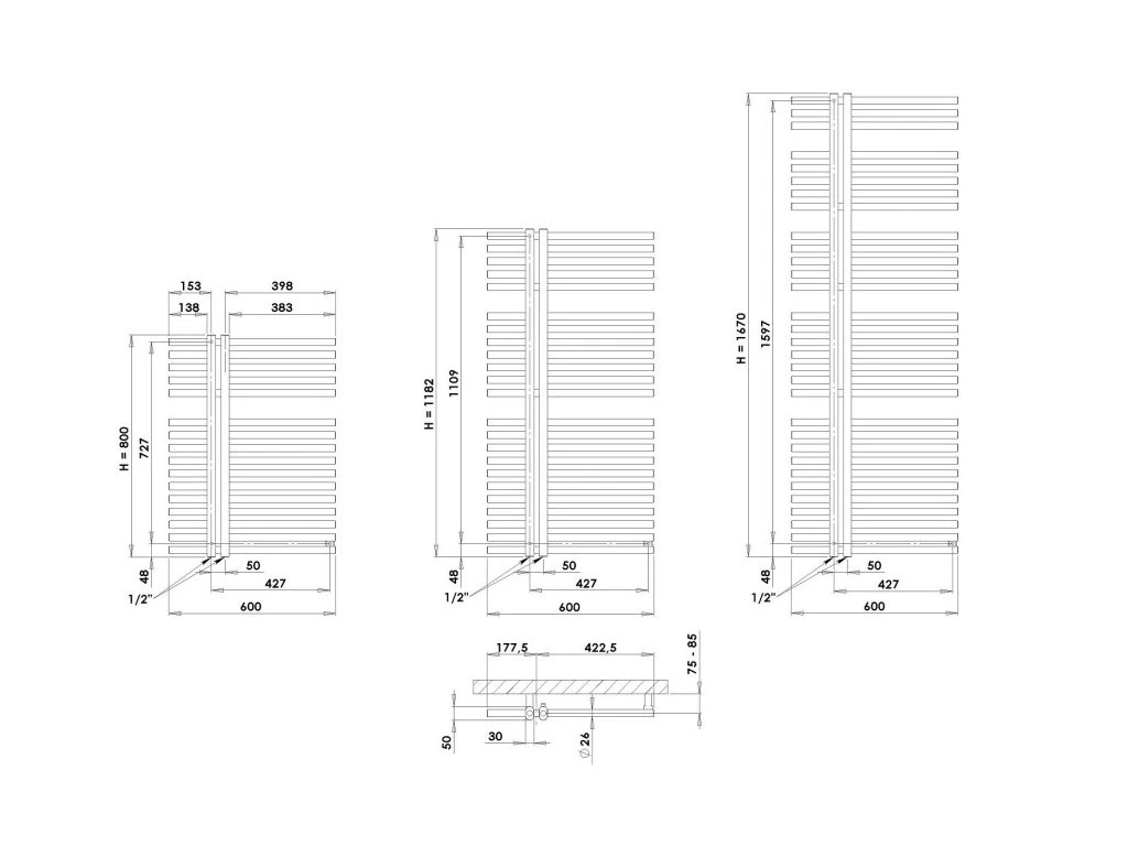 PMH KRONOS KR3 kúpeľňový radiátor 1670/600, centrálne pripojenie, strieborný metalický lesk, KR3MS