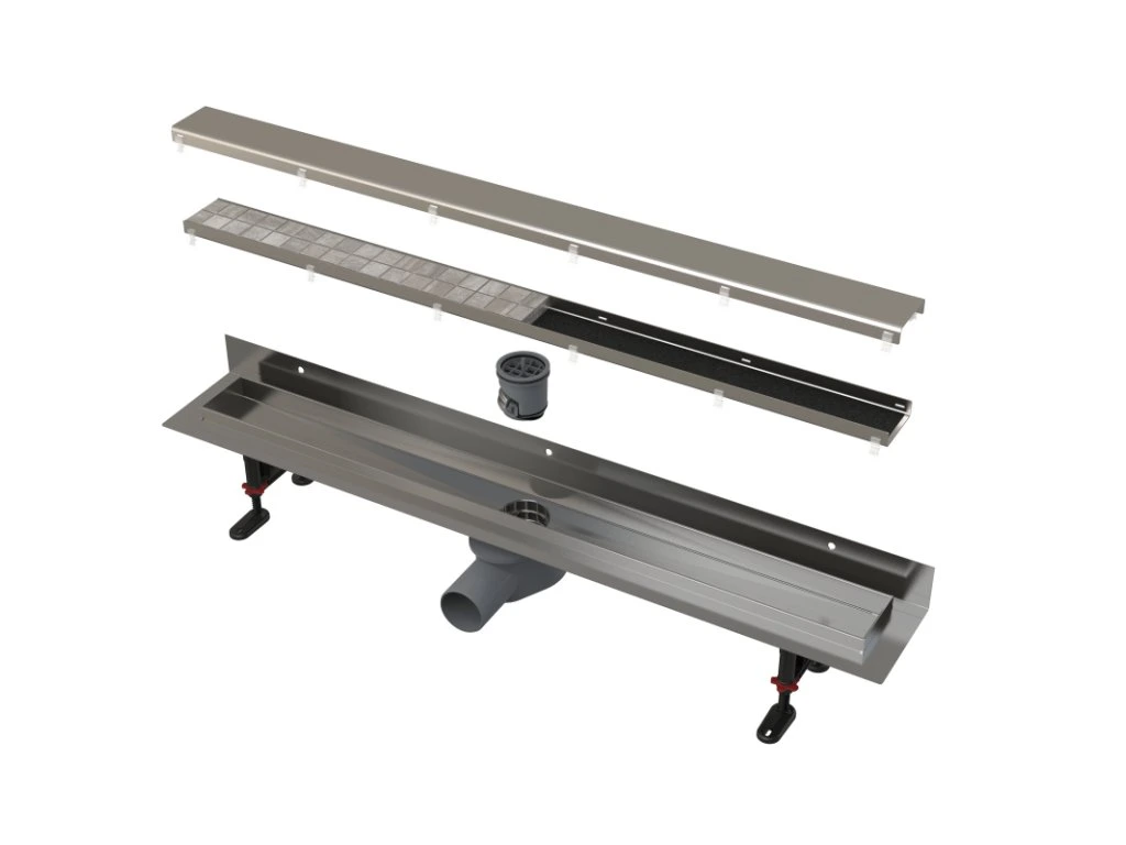 - Podlahový žľab z nehrdzavejúcej ocele (zušľachtenie materiálu morením a pasiváciou, elektrochemické leštenie)