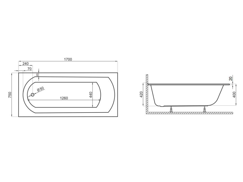 Polimat Classic Slim akrylátová vaňa 150x75, 170x75 Dĺžka vane: 150 cm, 00287