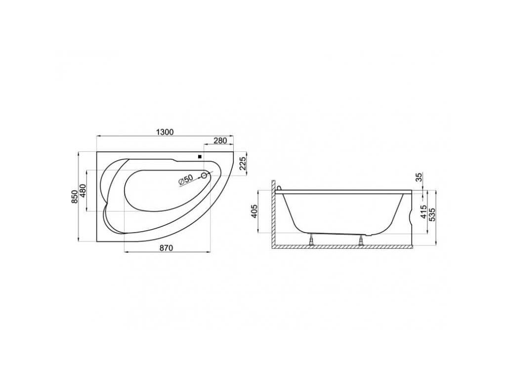 Polimat Standard 130x85 akrylátová vaňa Dĺžka vane: 130 cm, Orientácia: ľavá, STD13085_LEVA_130_CM