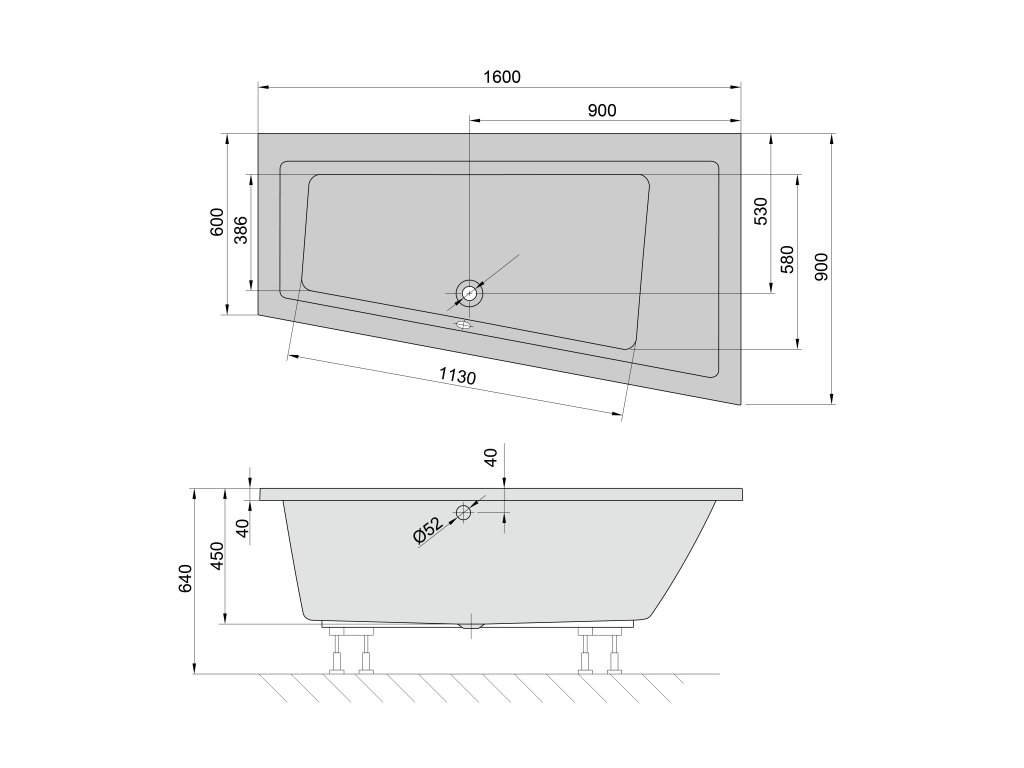Polysan ANDRA R asymetrická vaňa 160x90x45cm, šedá 81541.3