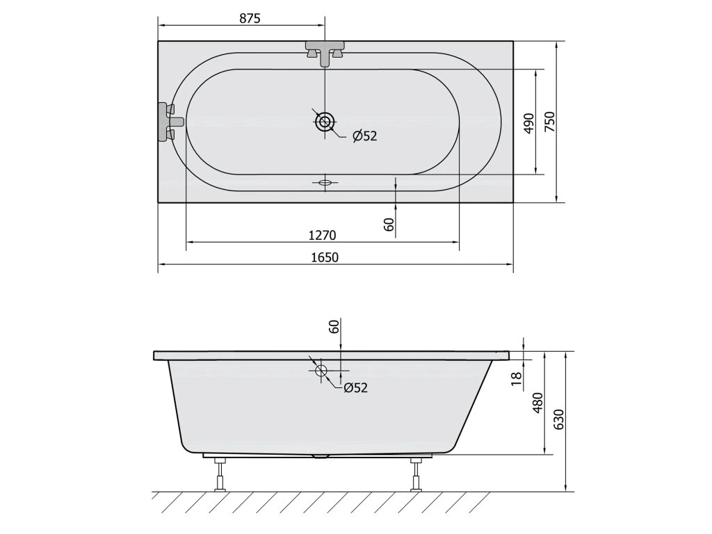 Polysan ASTRA B SLIM obdĺžniková vaňa 165x75x48cm, biela 32611S