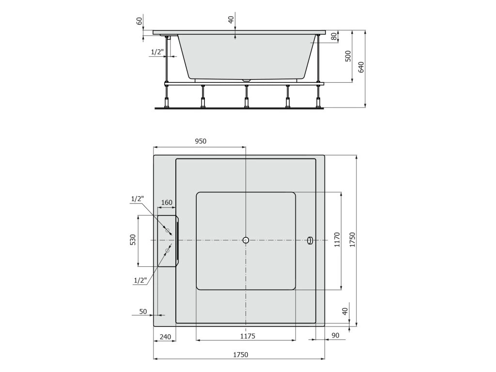Polysan CAME FALLS štvorcová vaňa s konštrukciou 175x175x50cm, biela 23611F
