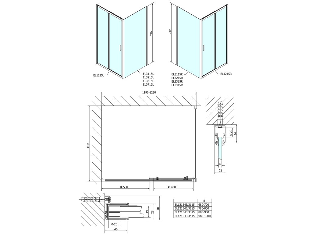 Polysan EASY obdĺžniková sprchová zástena 1200x800mm L/P varianta EL1215EL3215
