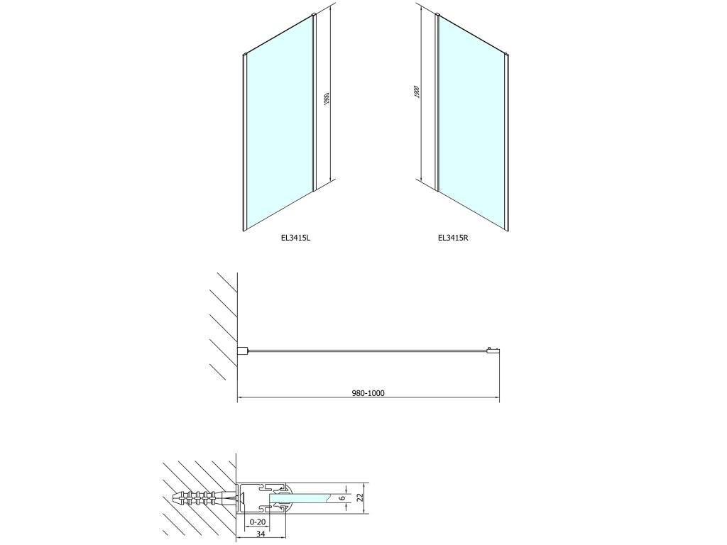 Polysan EASY sprchová bočná stena 1000mm, číre sklo EL3415