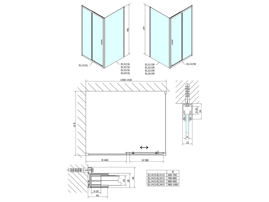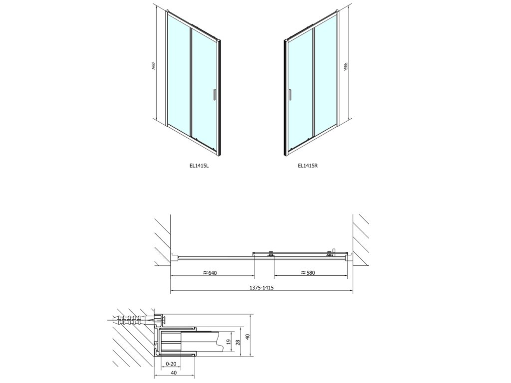 Polysan EASY sprchové dvere 1400mm, číre sklo EL1415