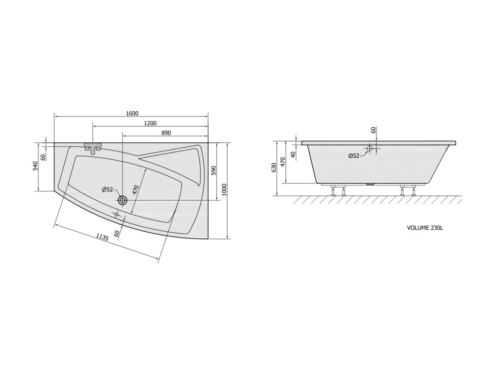 Polysan EVIA R asymetrická vaňa 160x100x47cm, pravá, biela 12611