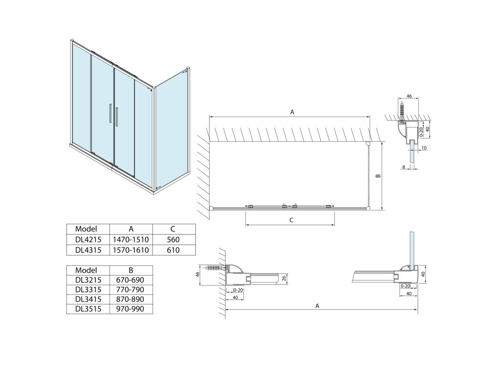 Polysan LUCIS LINE sprchová bočná stena 800mm, číre sklo DL3315