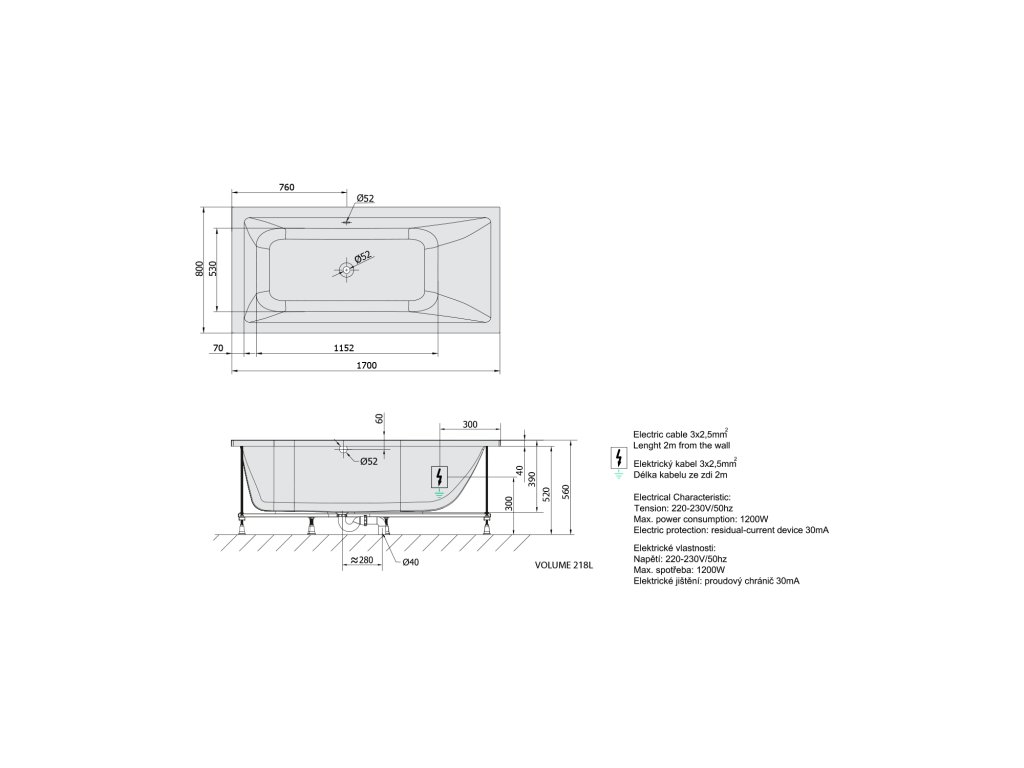 • Jednoduchá inštalácia (ako u bežných vaní + elektrické napájanie)
