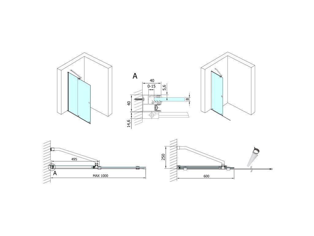 Polysan ROLLS sprchové dvere do priestoru 1000 mm, výška 2000 mm, číre sklo MS5-100