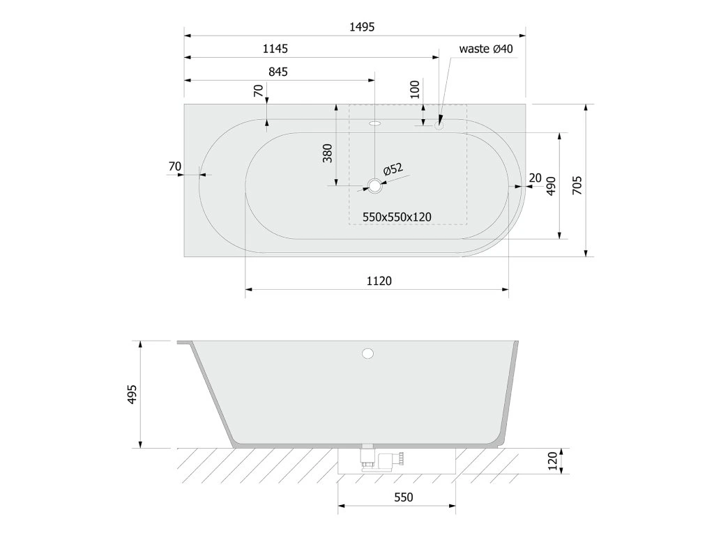 Polysan SUSSI L rohová stojaca vaňa liaty mramor 150x70x49,5cm, biela 93231L