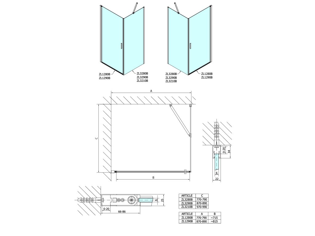Polysan ZOOM BLACK sprchová bočná stena 1000mm, číre sklo ZL3210B