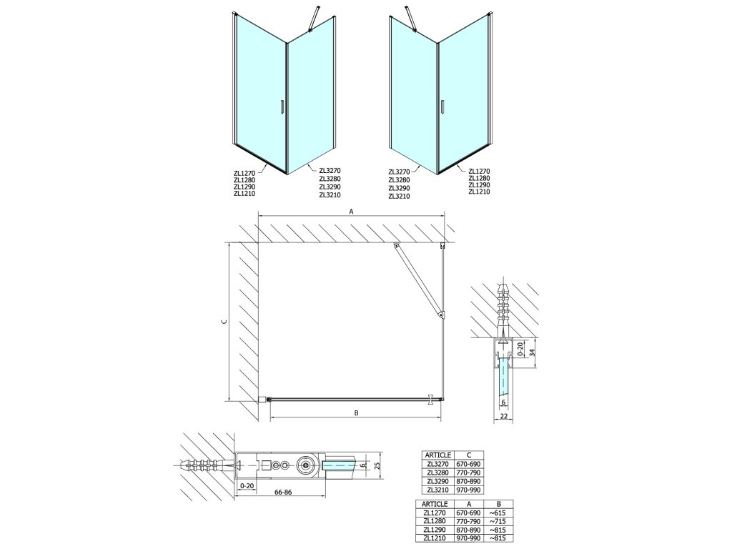 Polysan ZOOM sprchová bočná stena 900mm, číre sklo ZL3290
