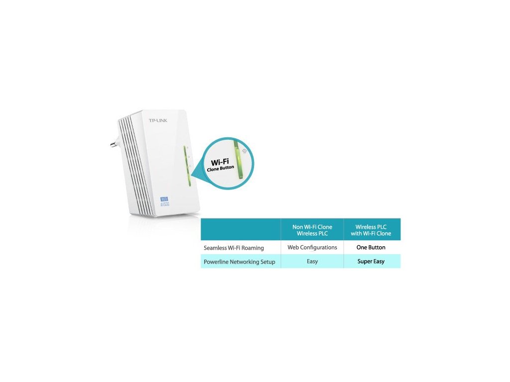 Štartovacia súprava TP-LINK TL-WPA4220 rozšíri vaše internetové pripojenie do ktorejkoľvek miestnosti vo vašej domácnosti pomocou existujúcej elektrickej zásuvky. TL-WPA4220 je vybavený tlačidlom Wi-Fi Clone, ktoré rozširuje jeho dosah, čo znamená, že dokáže automaticky skopírovať SSID a heslo vášho smerovača. Týmto spôsobom zariadenie TL-WPA4220 zjednodušuje konfiguráciu Wi-Fi a umožňuje bezproblémový roaming v rámci vašej domácej siete.