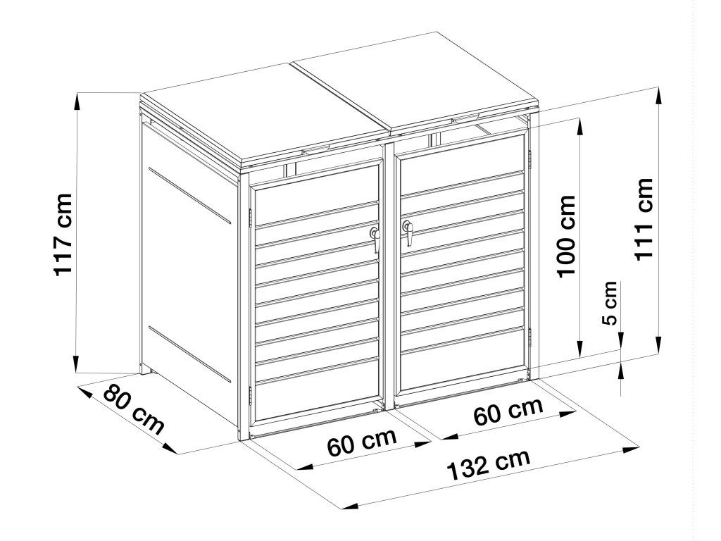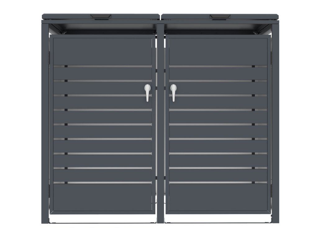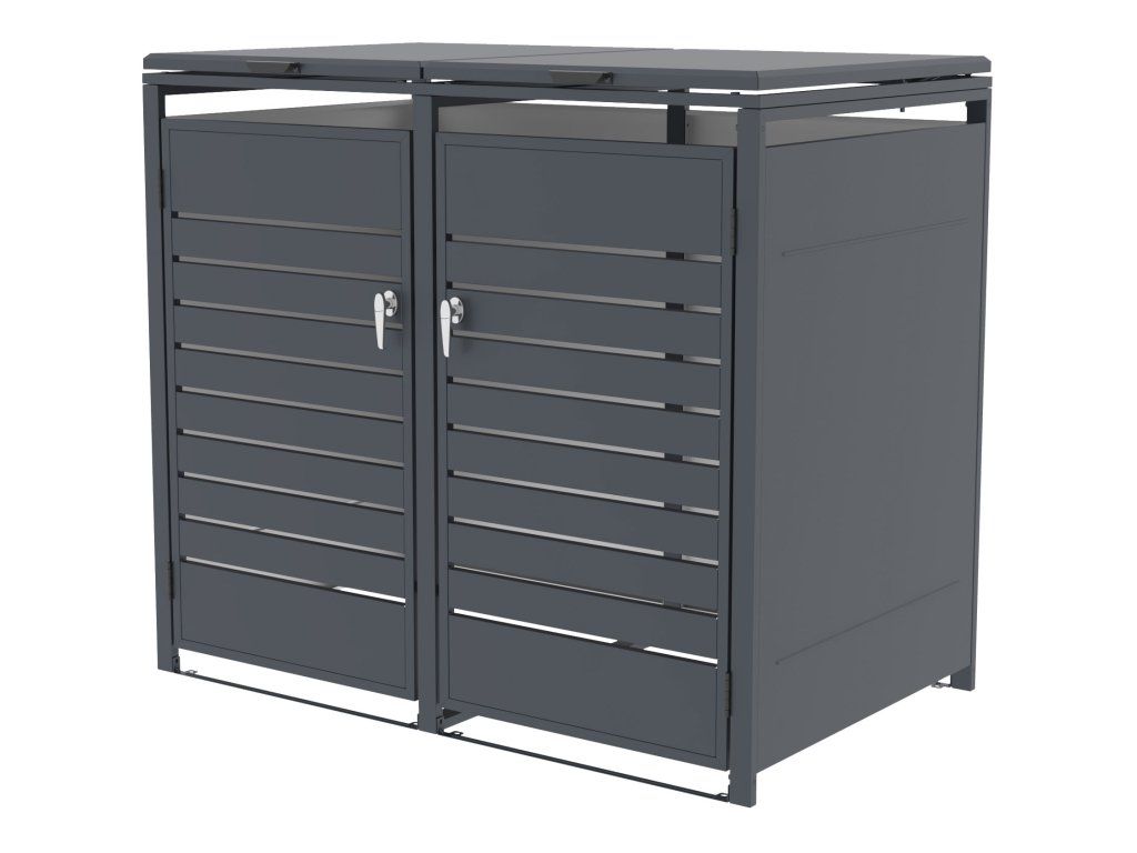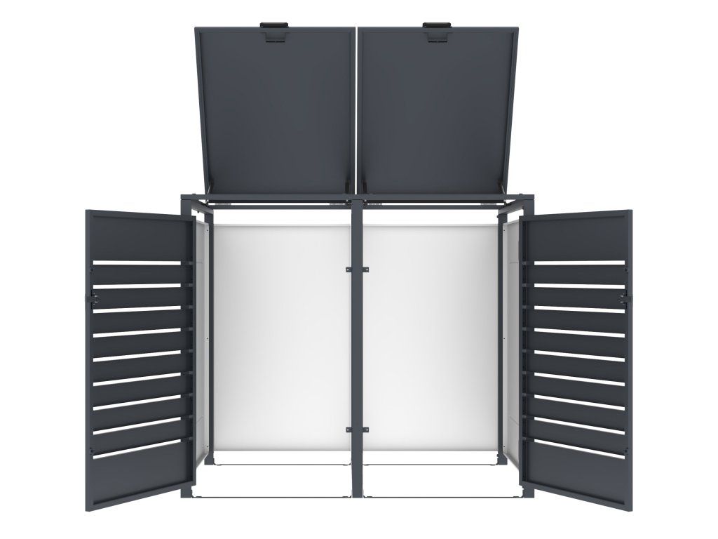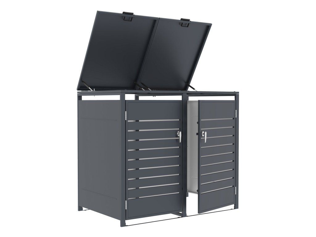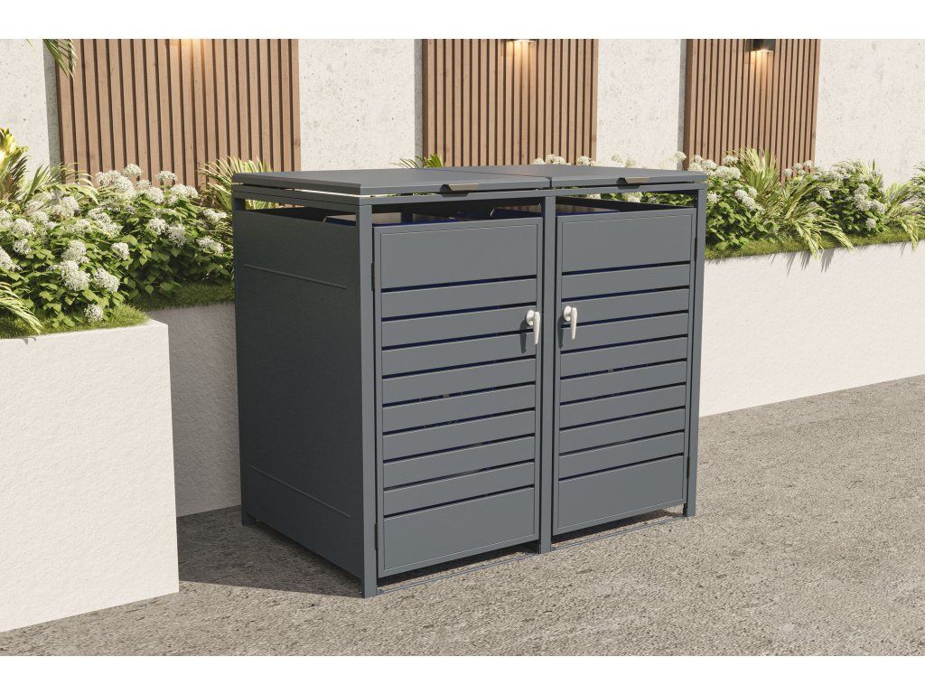 Moderný dizajn v antracitovej farbe dokonale doplní modernú novostavbu alebo tradičný vidiecky dom. Vďaka kompaktným rozmerom sa zmestí aj do menších priestorov pri vchode alebo pozdĺž plota. Pomocou prístrešku môžete elegantne skryť nevzhľadné plastové nádoby na odpad a prispieť k celkovému upravenému vzhľadu celého domu.