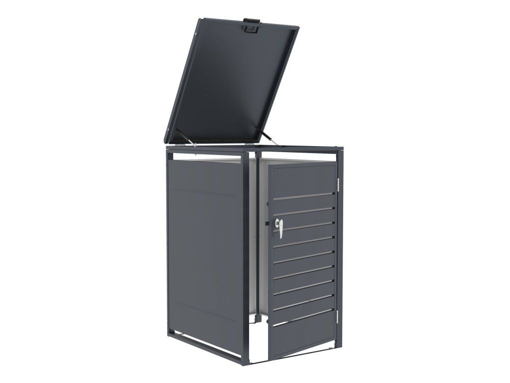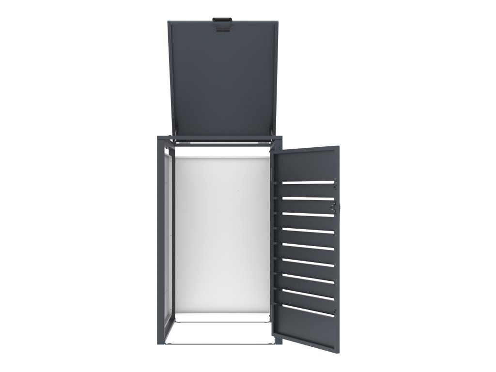 Moderný dizajn v antracitovej farbe dokonale doplní modernú novostavbu alebo tradičný vidiecky dom. Vďaka kompaktným rozmerom sa zmestí aj do menších priestorov pri vchode alebo pozdĺž plota. Pomocou prístrešku môžete elegantne skryť nevzhľadné plastové nádoby na odpad a prispieť k celkovému upravenému vzhľadu celého domu.
