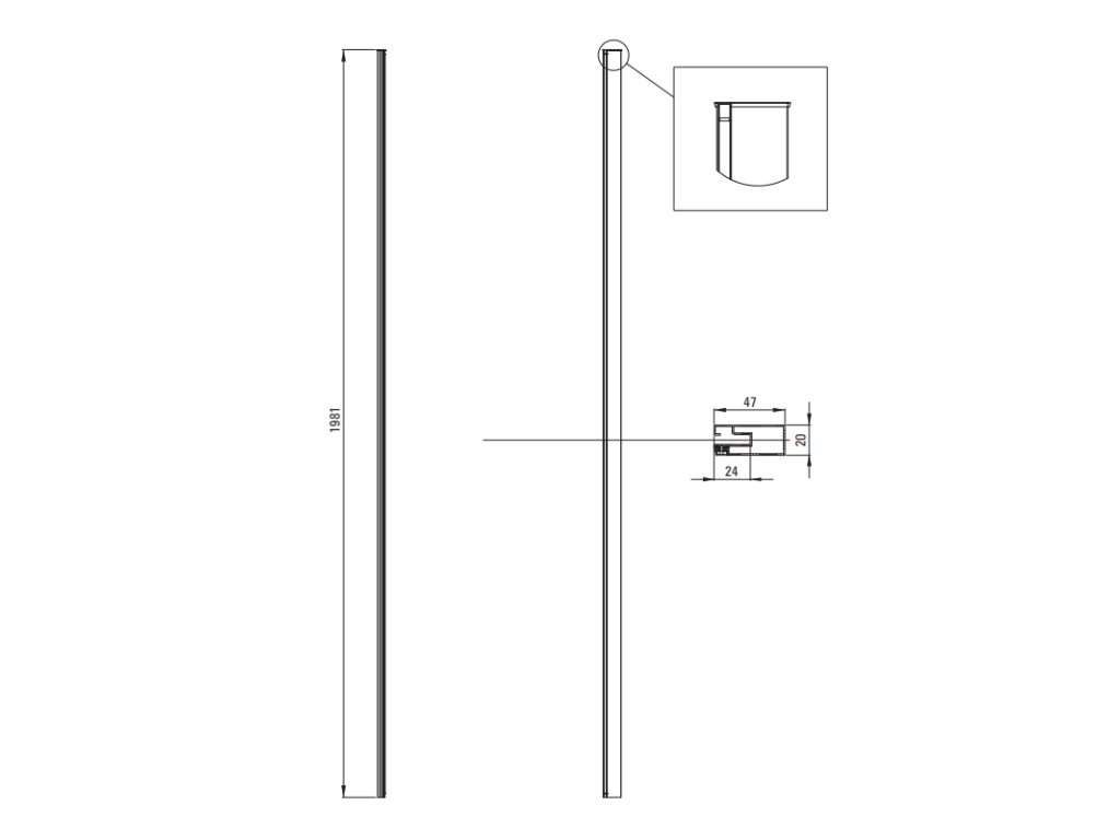 Tento profil patrí do systému Kerria Plus a umožňuje kombinovať posuvné dvere s walk-in. Toto riešenie sa používa v rohových sprchových kútoch. Profil má chrómový povrch a dokonale sa hodí k systému Kerria Plus. Je určený pre posuvné dvere.