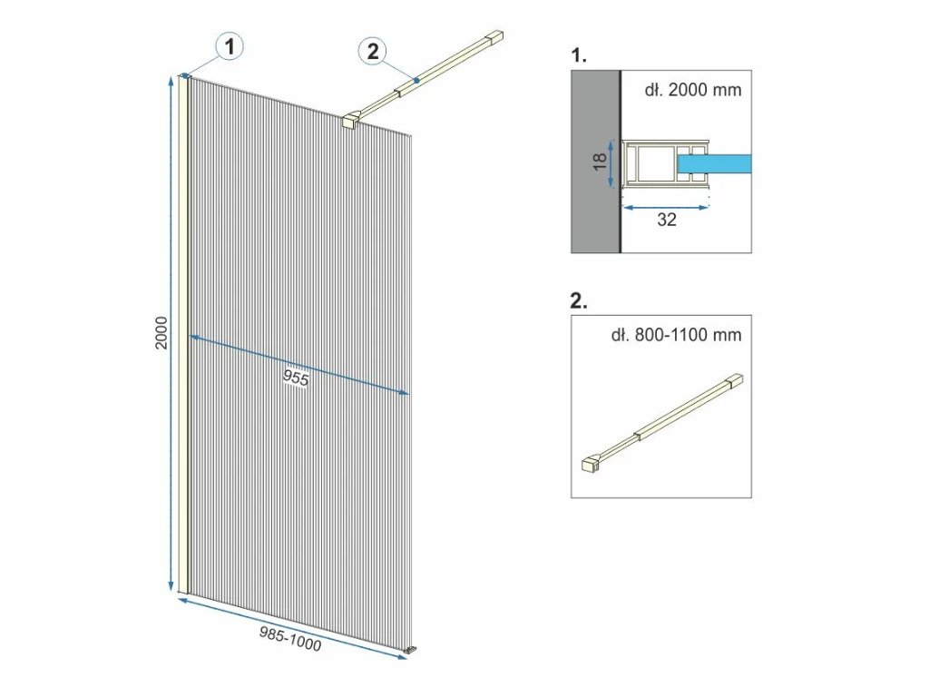 Dimenzia Walk In: 100 cm