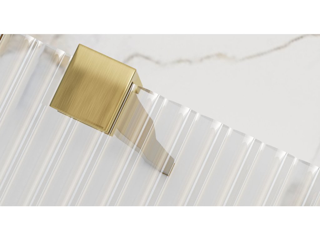 Dizajnový variant sprchového kúta Walk In so zlatými profilmi, ktorý je jedným z najmodernejších trendov vo vybavení kúpeľní. Ide o otvorený sprchový kút, ktorý pozostáva z jednej steny z bezpečnostného tvrdeného skla, čo zabraňuje náhodnému postriekaniu vodou. Sklo je drážkované, vďaka čomu sprchové dvere pôsobia intímnejšie. Povrchová úprava Easy Clean zabraňuje usadzovaniu nečistôt na skle a vzniku stôp po vode. Voda sa odvádza cez odtokový kanálik umiestnený v podlahe. Pri inštalácii si možno vybrať univerzálne pravé alebo ľavé vyhotovenie. Sprchový kút Aero dodá vašej kúpeľni moderný a čistý vzhľad, vďaka čomu získa vaša kúpeľňa jedinečný dizajnový nádych podľa najnovších trendov.