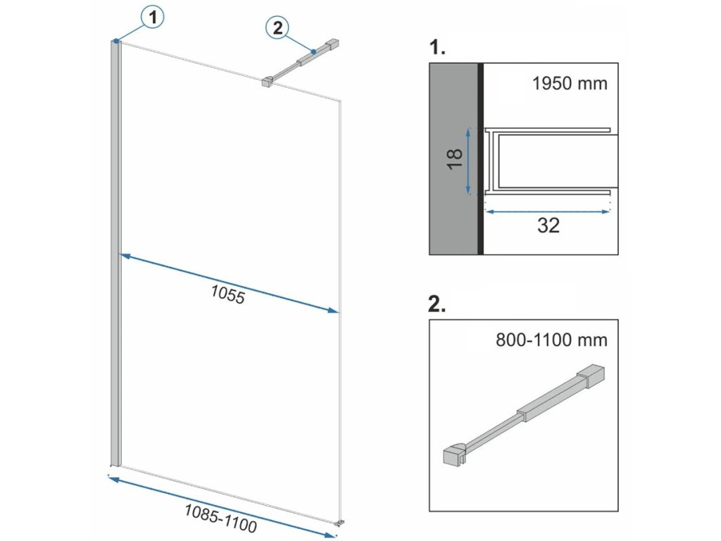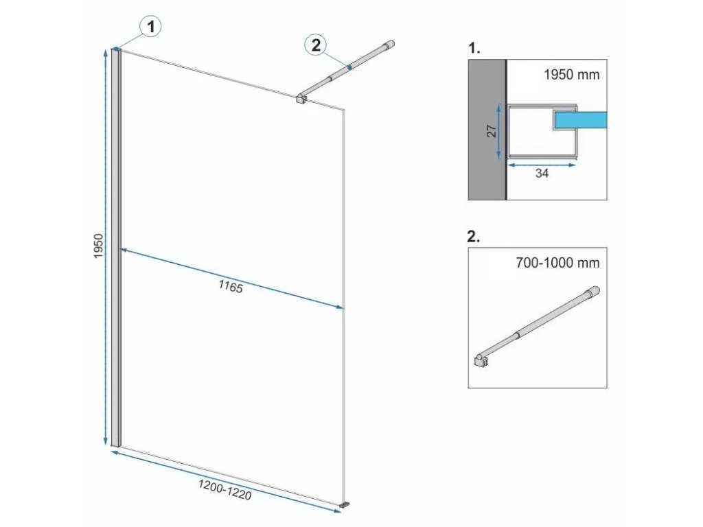 Tabuľka rozmerov sprchovej steny Aero Walk In