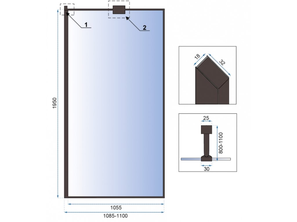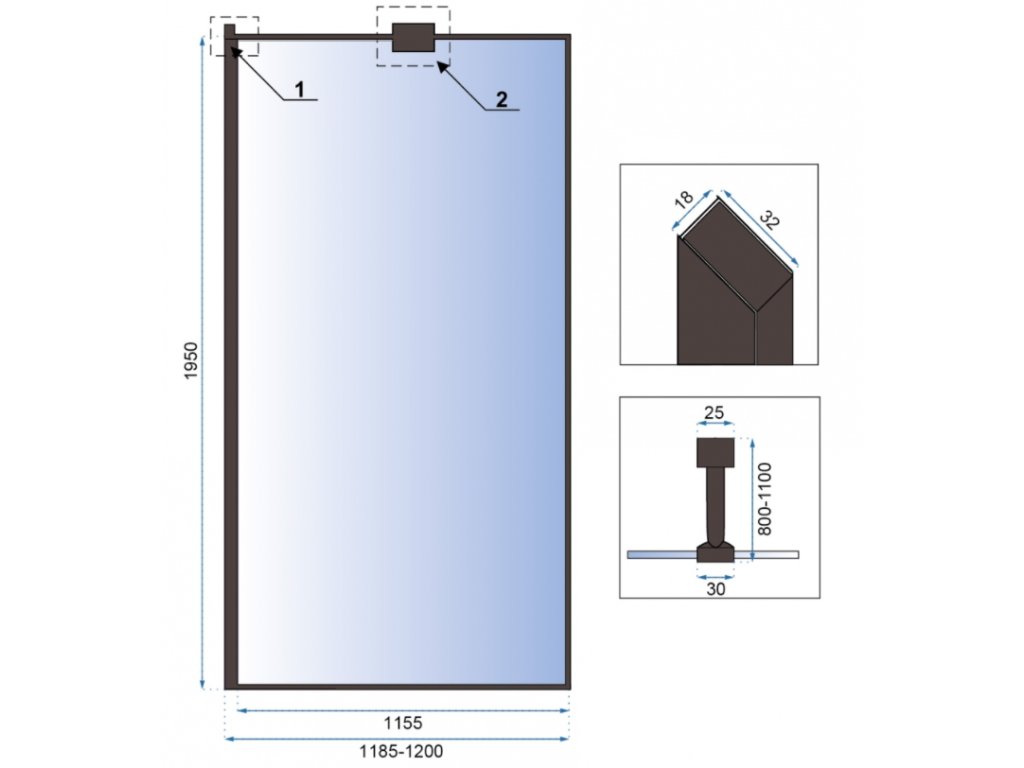 Tabuľka rozmerov sprchového kúta Aero Walk In